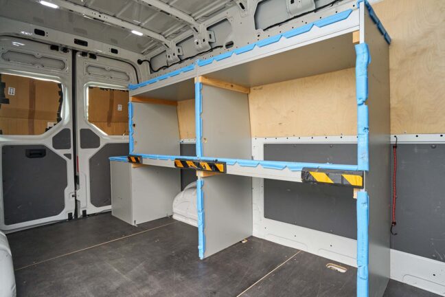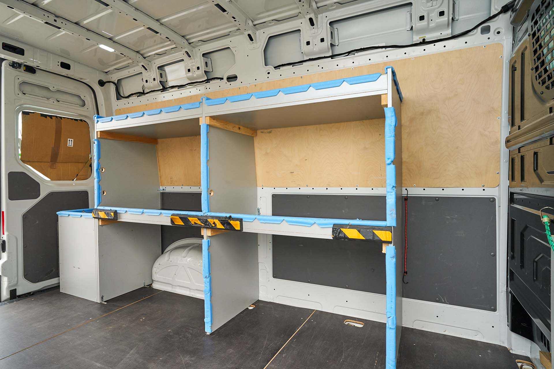 Our Video Van is a practical and efficient support vehicle tailored to the needs of the Video Assist team. Built on the reliable VW Crafter chassis, it offers a clean, organized interior with built-in shelving to accommodate monitors, accessories, and control units. Inside, the van features a folding workstation table and interior LED lighting.